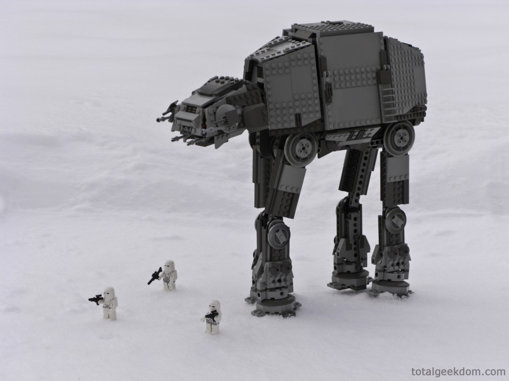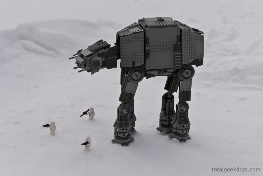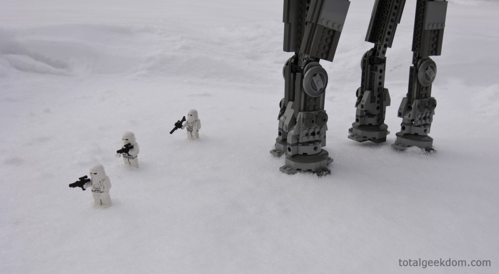 With all the snow outside it seemed like a perfect time for a Hoth. I rounded up some of General Veers’ finest troops and commandeered one AT-AT and set out on recon mission. We got underway quickly and were on the move looking for any Rebels who might be out on patrols. I’m sure the sight of three armed Snowtroopers along with the massive AT-AT would be enough to send any Rebel Scum running for their lives.